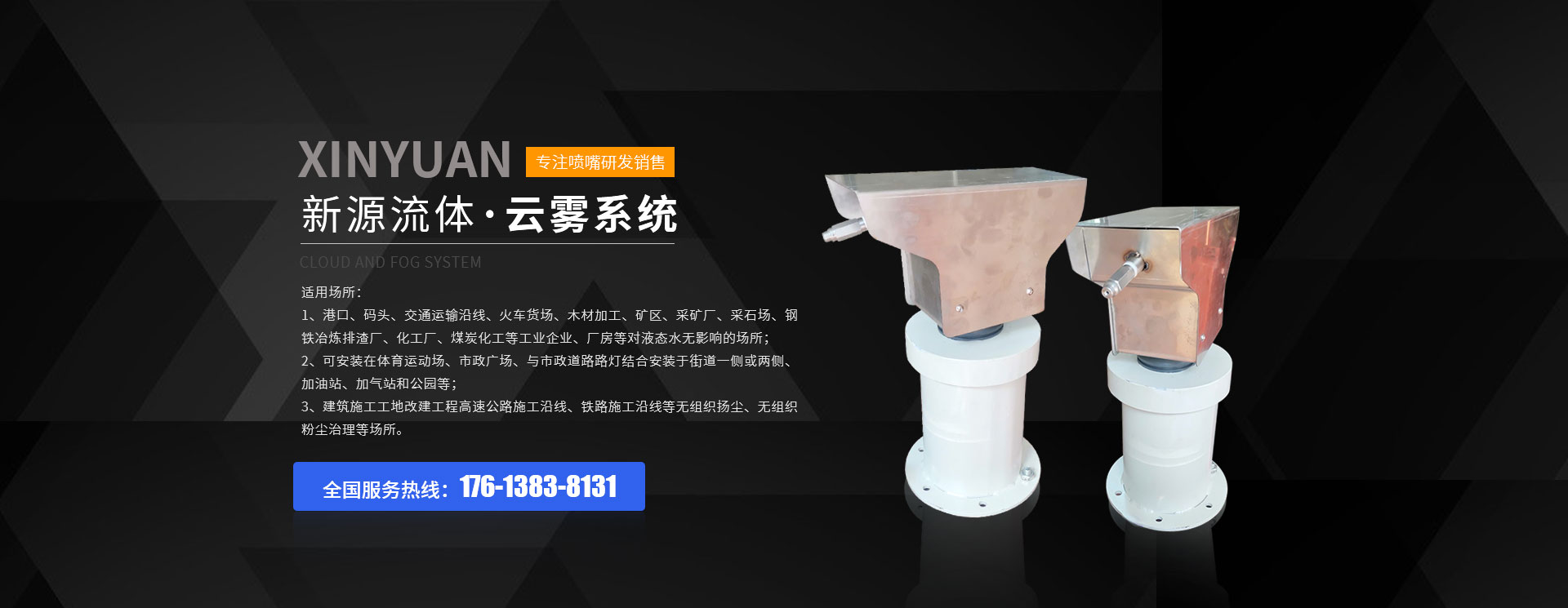 河南新源流體噴霧技術有限公司是一家從事工業(yè)噴嘴、噴頭、噴霧噴淋系統(tǒng)、云霧系統(tǒng),微米級干霧抑塵系統(tǒng),脫硫系統(tǒng)、環(huán)保工程的研發(fā)、生產(chǎn)、銷售及服務于一體的技術型企業(yè),產(chǎn)品規(guī)格型號多達幾千種,廣泛應用于環(huán)保、抑塵、加濕、清洗、冷卻、潤滑、脫硫脫硝、抑菌消毒、噴涂涂層、農(nóng)林牧業(yè)等領域;公司憑借雄厚的研發(fā)、創(chuàng)新能力,標準系統(tǒng)的生產(chǎn)流程,完善的品質管理系統(tǒng)和日益完善的銷售網(wǎng)絡及優(yōu)質的售后服務成為行業(yè)的后起之秀。河